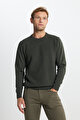 Pamuklu Standart Fit Normal Kesim Bisiklet Yaka Jakarlı Triko Lacivert Kazak