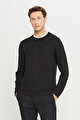 Pamuklu Standart Fit Normal Kesim Bisiklet Yaka Jakarlı Triko Siyah Kazak