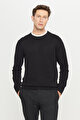 Pamuklu Standart Fit Normal Kesim Bisiklet Yaka Jakarlı Triko Siyah Kazak