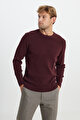 Pamuklu Standart Fit Normal Kesim Bisiklet Yaka Petek Dokulu Triko Ekru Kazak