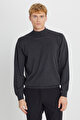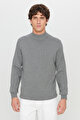Pamuklu Standart Fit Normal Kesim Yarım Balıkçı Yaka Triko Gri Melanj Kazak