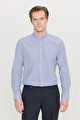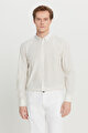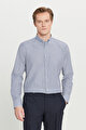 Pamuklu Tailored Slim Fit Dar Kesim Düğmeli Gömlek Yaka Çizgili Beyaz-Antrasit Gömlek