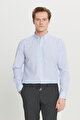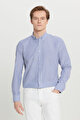 Pamuklu Tailored Slim Fit Dar Kesim Düğmeli Yaka Çizgili Beyaz-Mavi Gömlek