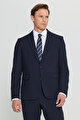 Regular Fit Normal Kesim Mono Yaka Armürlü Kapak Cepli Esnek Lacivert Takım Elbise