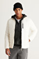 Rüzgar Geçirmez Sıcak Tutan Elyaf Dolgulu Ultra Hafif Standart Fit Şişme Beyaz Mont
