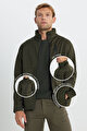 Sıcak Tutan Comfort Fit Rahat Kesim Dik Yaka Lacivert Mont