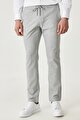 Slim Fit Dar Kesim Beli Bağlamalı Yan Cep Gri Melanj Pantolon