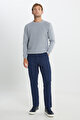 Slim Fit Dar Kesim Beli Gizli Lastikli Kazayağı Desenli Yan Cep Esnek Lacivert Pantolon