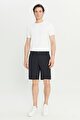 Slim Fit Dar Kesim Beli Lastikli Yan Cepli Esnek Siyah Şort