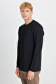 Slim Fit Dar Kesim Bisiklet Yaka Jakarlı Esnek Siyah Uzun Kollu Tişört