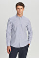 Slim Fit Dar Kesim Düğmeli Yaka Çizgili Beyaz-Lacivert Gömlek