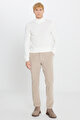 Slim Fit Dar Kesim Kadife Beli Bağlamalı Yan Cep Esnek Bej Pantolon