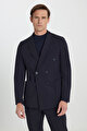 Slim Fit Dar Kesim Kırlangıç Yaka Beli Lastikli Torba Cepli Esnek Lacivert Takım Elbise