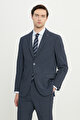 Slim Fit Dar Kesim Kırlangıç Yaka Çizgili Gofre Desenli Kapak Cepli Lacivert Takım Elbise
