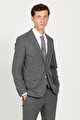 Slim Fit Dar Kesim Kırlangıç Yaka Çizgili Koyu Gri Takım Elbise