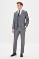 Slim Fit Dar Kesim Kırlangıç Yaka Desenli Gri-Siyah Yelekli Takım Elbise