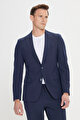 Slim Fit Dar Kesim Kırlangıç Yaka Desenli Lacivert Takım Elbise