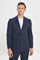 Slim Fit Dar Kesim Kırlangıç Yaka Gofre Desenli Lacivert Takım Elbise