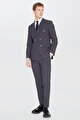 Slim Fit Dar Kesim Kırlangıç Yaka Kapak Cepli Ekose Gofre Desenli Antrasit Takım Elbise