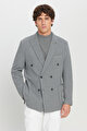 Slim Fit Dar Kesim Kırlangıç Yaka Torba Cepli Esnek Kruvaze Gri Ceket