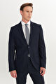 Slim Fit Dar Kesim Mono Yaka Armürlü Esnek Lacivert Takım Elbise