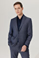 Slim Fit Dar Kesim Mono Yaka Armürlü Lacivert Takım Elbise