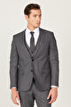 Slim Fit Dar Kesim Mono Yaka Armürlü Yelekli Antrasit Yelekli Takım Elbise