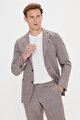 Slim Fit Dar Kesim Mono Yaka Beli Bağlamalı Desenli Vizon Takım Elbise