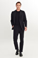 Slim Fit Dar Kesim Mono Yaka Beli Bağlamalı Siyah Takım Elbise