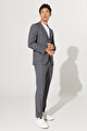Slim Fit Dar Kesim Mono Yaka Desenli Antrasit-Beyaz Takım Elbise