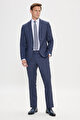 Slim Fit Dar Kesim Mono Yaka Desenli Mavi Takım Elbise