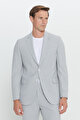 Slim Fit Dar Kesim Mono Yaka Gofre Desenli Açık Gri Takım Elbise