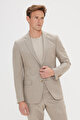 Slim Fit Dar Kesim Mono Yaka Gofre Desenli Bej Takım Elbise