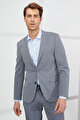 Slim Fit Dar Kesim Mono Yaka Gofre Desenli Gri Takım Elbise