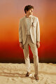 Slim Fit Dar Kesim Mono Yaka Gofre Desenli Kapak Cepli Esnek Bej Takım Elbise
