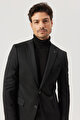 Slim Fit Dar Kesim Mono Yaka Örme Siyah Takım Elbise