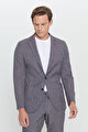 Slim Fit Dar Kesim Mono Yaka Seyahat Çantalı Desenli Siyah-Füme Takım Elbise