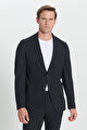 Slim Fit Dar Kesim Mono Yaka Yünlü Siyah Takım Elbise
