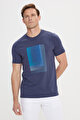 Slim Fit Dar Kesim Pamuklu Baskılı Bisiklet Yaka Lacivert Tişört