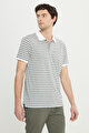 Slim Fit Dar Kesim Polo Yaka Esnek Beyaz-Gri Tişört
