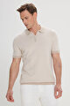 Standart Fit Normal Kesim %100 Pamuk Jakarlı Polo Yaka Bej-Ekru Tişört