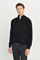 Standart Fit Normal Kesim Bato Yaka Triko Siyah Kazak