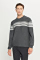 Standart Fit Normal Kesim Bisiklet Yaka Jakarlı Triko Antrasit-Melanj Kazak