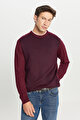 Standart Fit Normal Kesim Bisiklet Yaka Jakarlı Triko Bordo-Lacivert Kazak