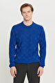 Standart Fit Normal Kesim Bisiklet Yaka Jakarlı Triko Gri Melanj Kazak