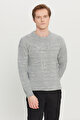 Standart Fit Normal Kesim Bisiklet Yaka Jakarlı Triko Gri Melanj Kazak