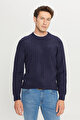 Standart Fit Normal Kesim Bisiklet Yaka Jakarlı Triko Lacivert Kazak