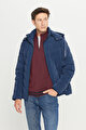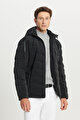 Standart Fit Normal Kesim Dik Yaka Kapüşonlu Yan Cepli Gri Kaban