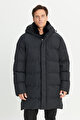 Standart Fit Normal Kesim İçi Kürklü Sabit Kapüşonlu Yan Cep Kapitone Desenli Siyah Kaban