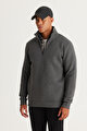 Standart Fit Normal Kesim İçi Polarlı Bato Yaka Pamuklu Antrasit-Melanj Sweatshirt